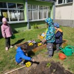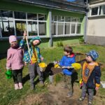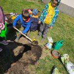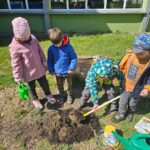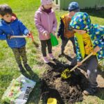 Dziś Dzień Ziemi. Z tej okazji rozmawialiśmy w przedszkolu na temat sposobu pomagania przyrodzie. Dlatego w naszym przedszkolnym ogródku zasadziliśmy dziś krzaczek malin oraz zadbaliśmy szczególnie o wcześniejsze uprawy. Dosypaliśmy również ziarenek ptakom, które często nas odwiedzają. Przedszkolaki wiedzą jak dbać o przyrodę.